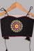 Black pure cotton blouse adorned with vibrant Banjaara-style embroidery, featuring multicolour hand-sewn kalis. Finished with playful tassels and elegant gota detailing on the hem, perfect for festive charm and comfort.