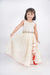 Dress your little one in timeless charm with this off-white lurex booti blouse and lehenga set, beautifully crafted for festive celebrations. The outfit features delicate mirror lace detailing paired with vibrant red gota lace, adding just the right touch of sparkle and tradition.