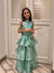 Stunning Green Ruffle lehenga set with intricate hand embroidery, perfect for festive occasions and weddings. Crafted for elegance and comfort, it offers a rich traditional look.